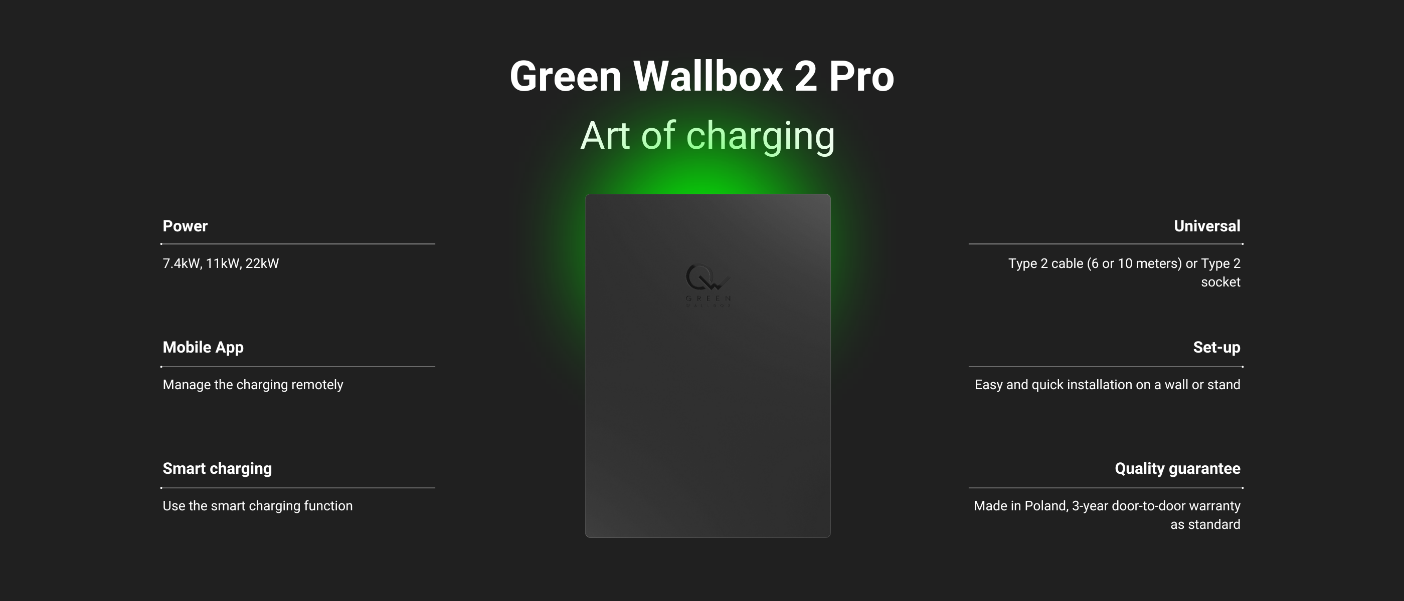 La série Green Wallbox 2 Pro a été conçue et fabriquée en Pologne. C’est la garantit de fiabilité et du respect des normes de sécurité les plus strictes. Les chargeurs bénéficient également d'une assistance permanente et de nouvelles fonctionnalités en fonction de la demande des utilisateurs.
